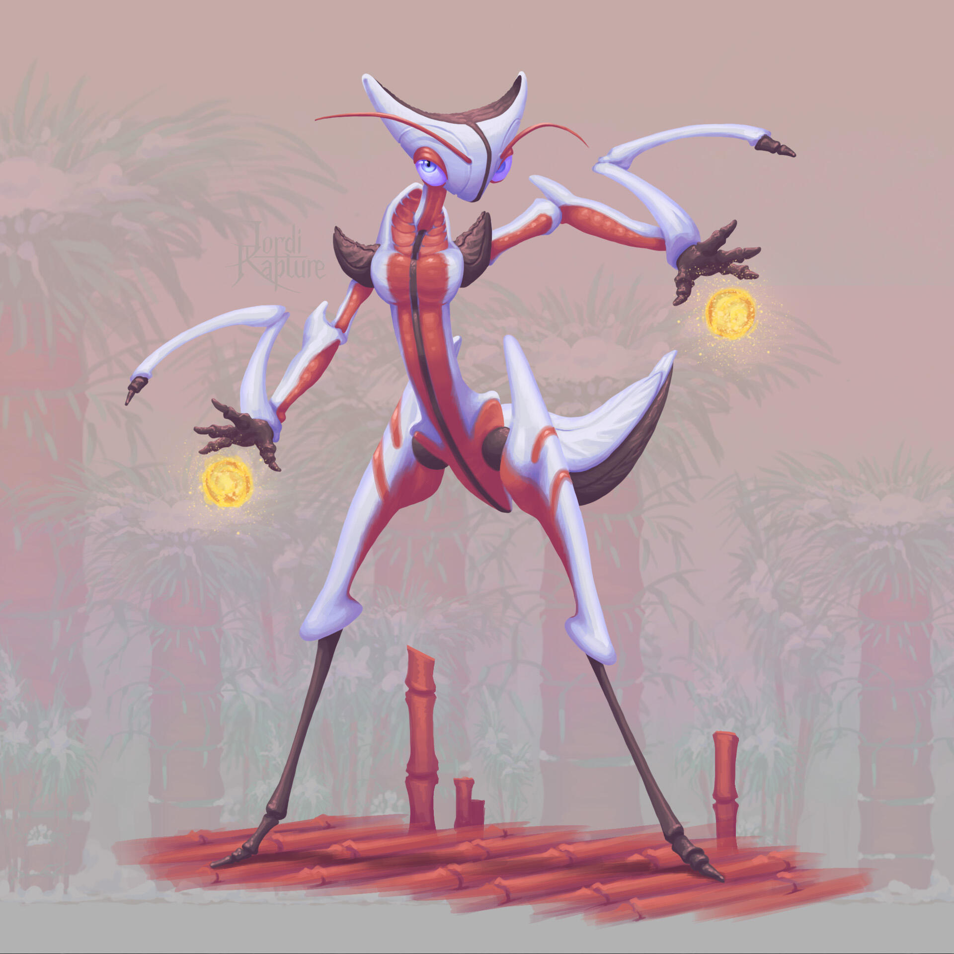 Visual development of Mantodean "B", a species from my personal project The Last Pollenar.